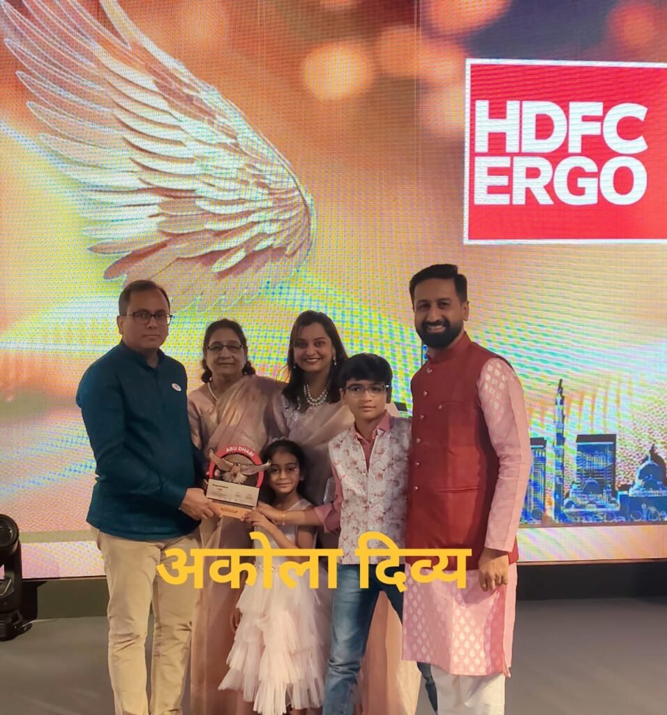 अकोला दिव्य न्यूज : विमा क्षेत्रात विशेषतः जनरल इन्शुरन्स क्षेत्रात गेल्या पन्नास वर्षांपासून सातत्याने उल्लेखनीय कार्य करणाऱ्या अकोला शहरातील कलंत्री परिवाराला आंतरराष्ट्रीय स्तरावर मोठा सन्मान प्राप्त झाला आहे.भारतातील नामांकित एचडीएफसी इर्गो जनरल इन्शुरन्स कंपनीकडून रोशनी विशाल कलंत्री यांना त्यांच्या परिवारासह नुकत्याच अबू धाबी येथे झालेल्या सोहळ्यात सन्मानित करण्यात आले.