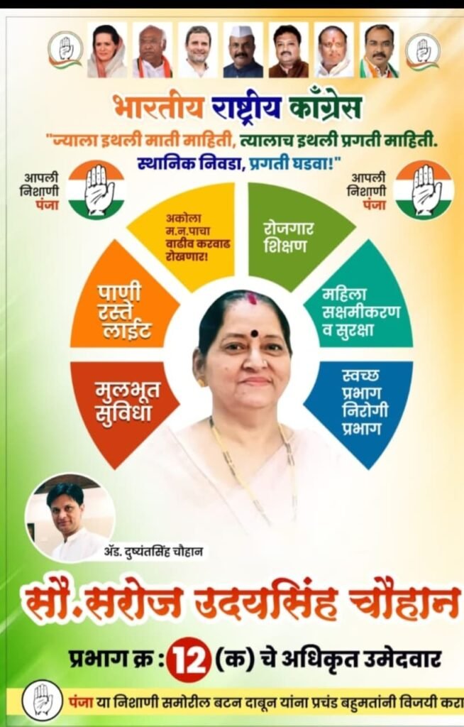 अकोला दिव्य न्यूज : ज्याला इथली माती माहिती, त्यालाच इथली प्रगती माहिती म्हणून प्रभागाचा स्थानिक रहिवासी निवडा आणि प्रगती घडवा, असं पहिल्या दिवसापासून घोषवाक्य व विकासाचा अजेंडा घेऊन महापालिका निवडणूक रिंगणात उतरलेल्या कॉंग्रेस पक्षाचा उमेदवार सरोज उदयसिंह चौहान यांनी पुर्ण प्रभाग पिंजून काढला. अत्यंत सामान्य राहणीमान आणि सामाजिक कार्यात सदैव तत्पर चौहान यांनी प्रभाग क्रमांक 12 मध्ये कडवे आवाहन निर्माण केले आहे असं शेवटच्या टप्प्यात दिसून येते.