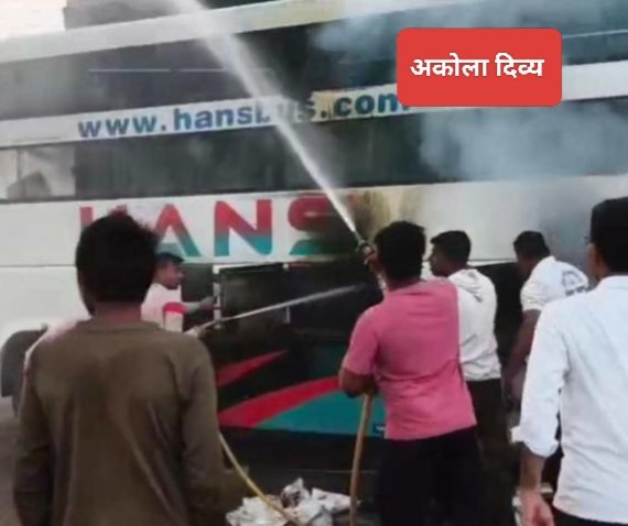 अकोला दिव्य न्यूज : अकोला मार्गावरील नांदुरा शहरातील आशीर्वाद हॉटेलसमोर एनएल ०७ बी ०६९४ क्रमांकाच्या खासगी बसला शनिवार, दि. ७ मार्च २०२६ रोजी अचानक आग लागल्याची घटना घडली.