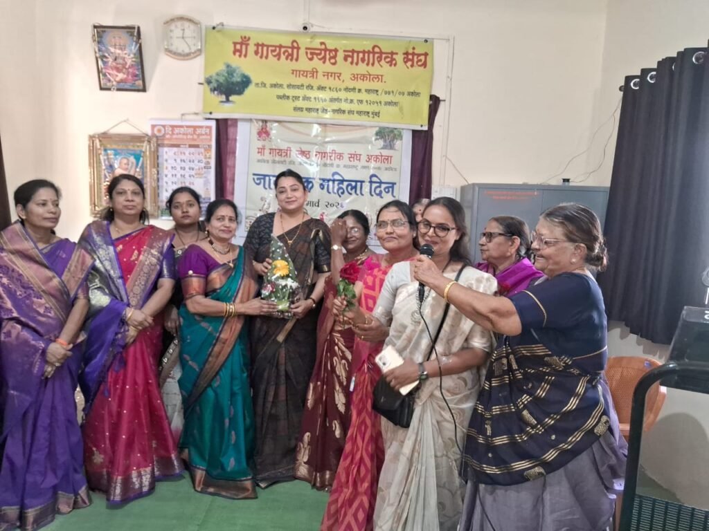 अकोला दिव्य न्यूज : जागतीक महिला दिनानिमित्त समाजात विशेष वा उल्लेखनीय, सामाजीक/धार्मिक क्षेत्रात किंवा गरीब व होतकरु कष्टकरी महिलांच्या विकासासाठी कार्य करणाऱ्या महिलांचा सत्कार करून माँ गायत्री ज्येष्ठ नागरीक संघाकडुन जागतीक महिला दिन साजरा करण्यात आला. कार्यक्रमाची सुरुवात माँ साहेब जिजाऊ यांच्या प्रतिमेचे पुजन करुन करण्यात आली.